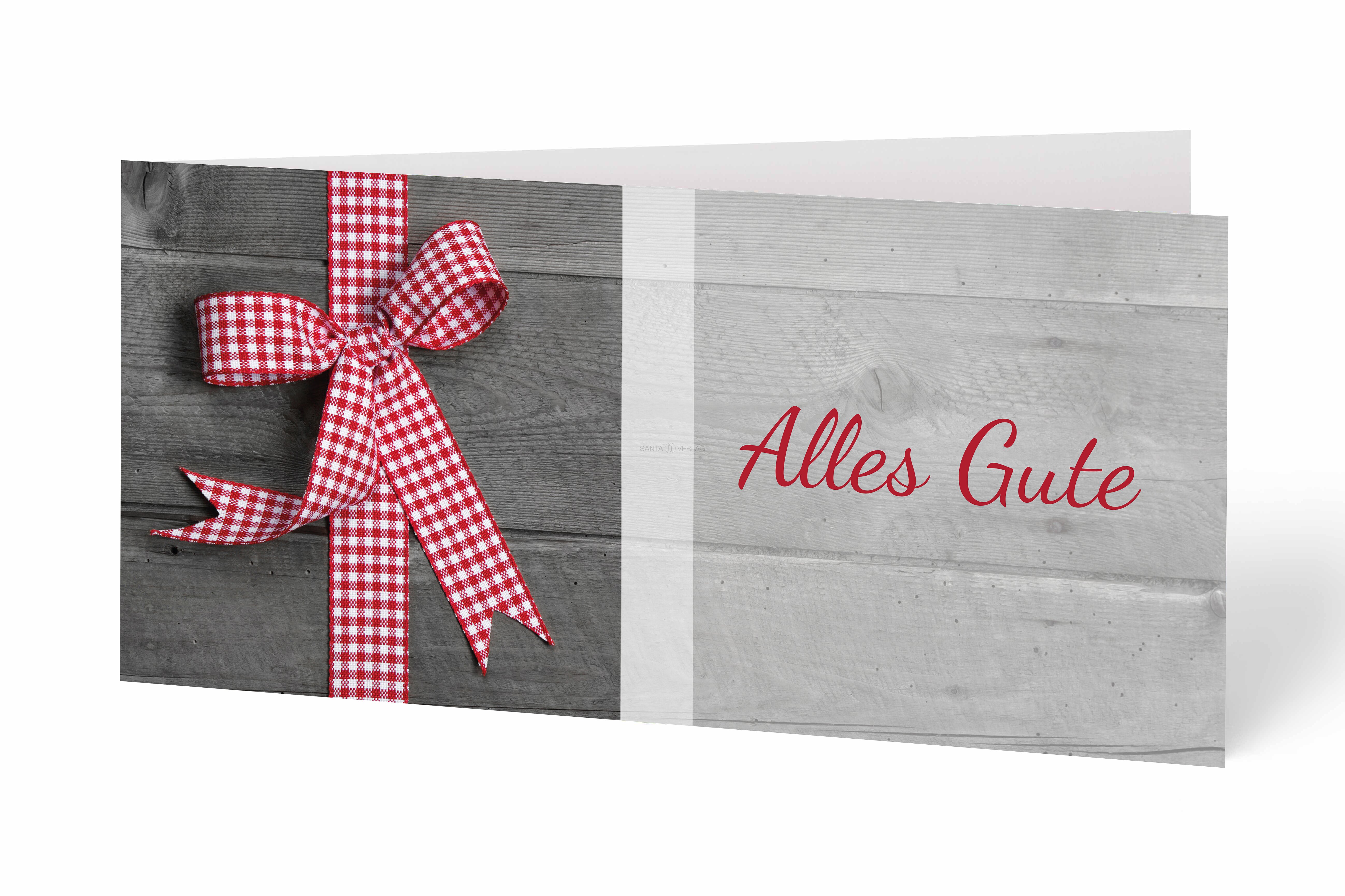 Moderne Glückwunschkarte mit rot-weiß karierter Schleife