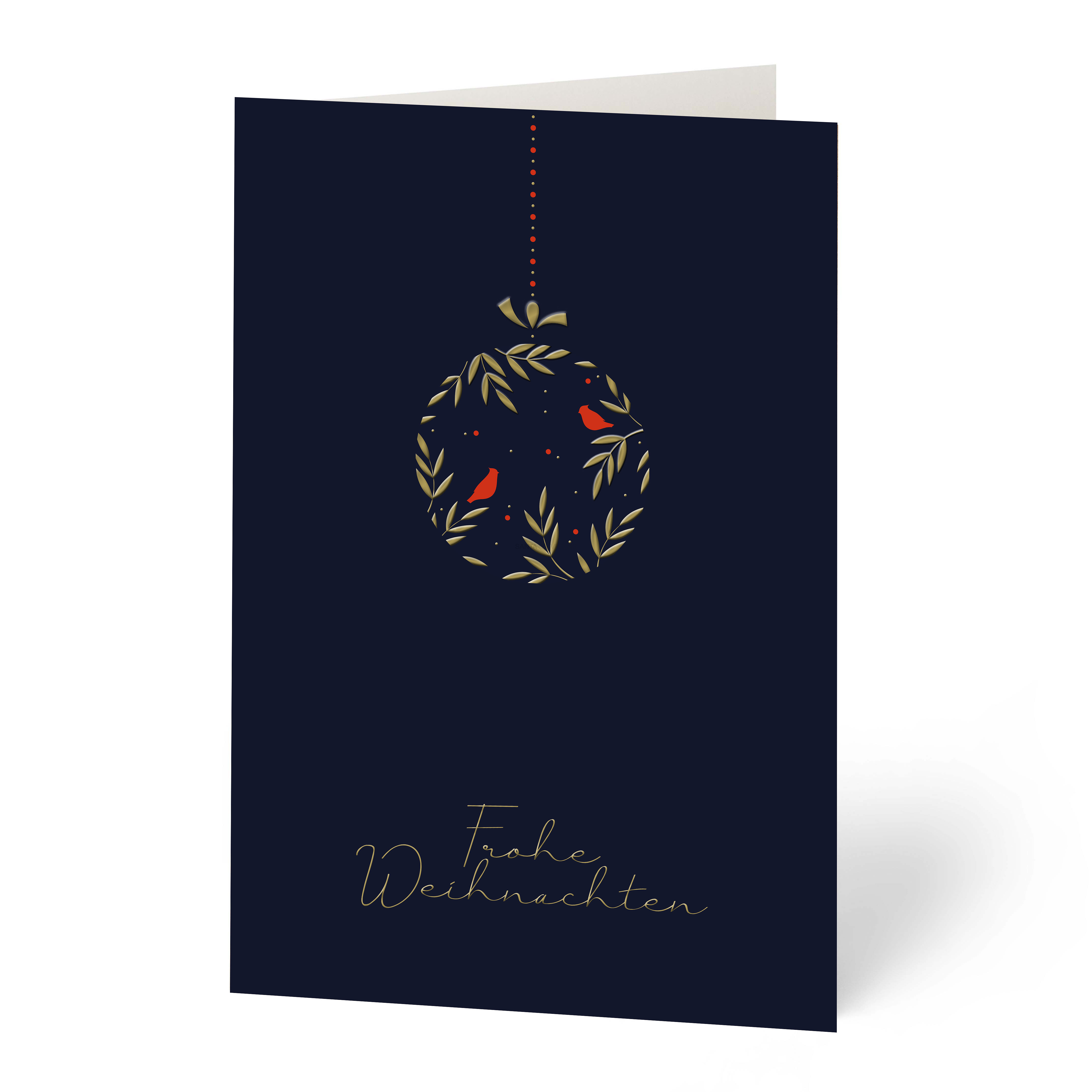 Weihnachtskarte, "Weihnachtskugel" Text mit Goldfolie veredel, incl. Couvert