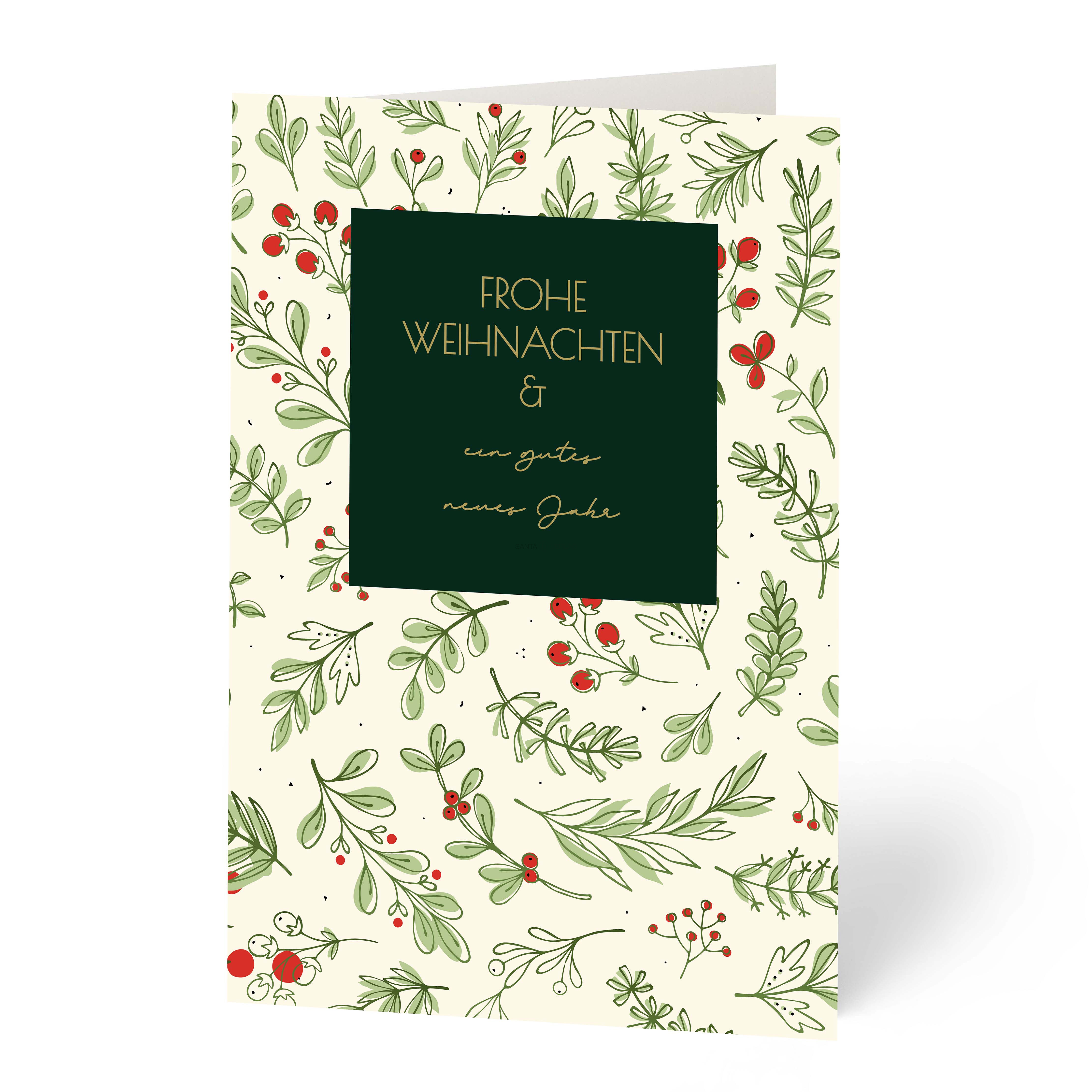 Weihnachtskarte, "Grüne Zweige" Text mit Goldfolie veredelt, incl. Couvert
