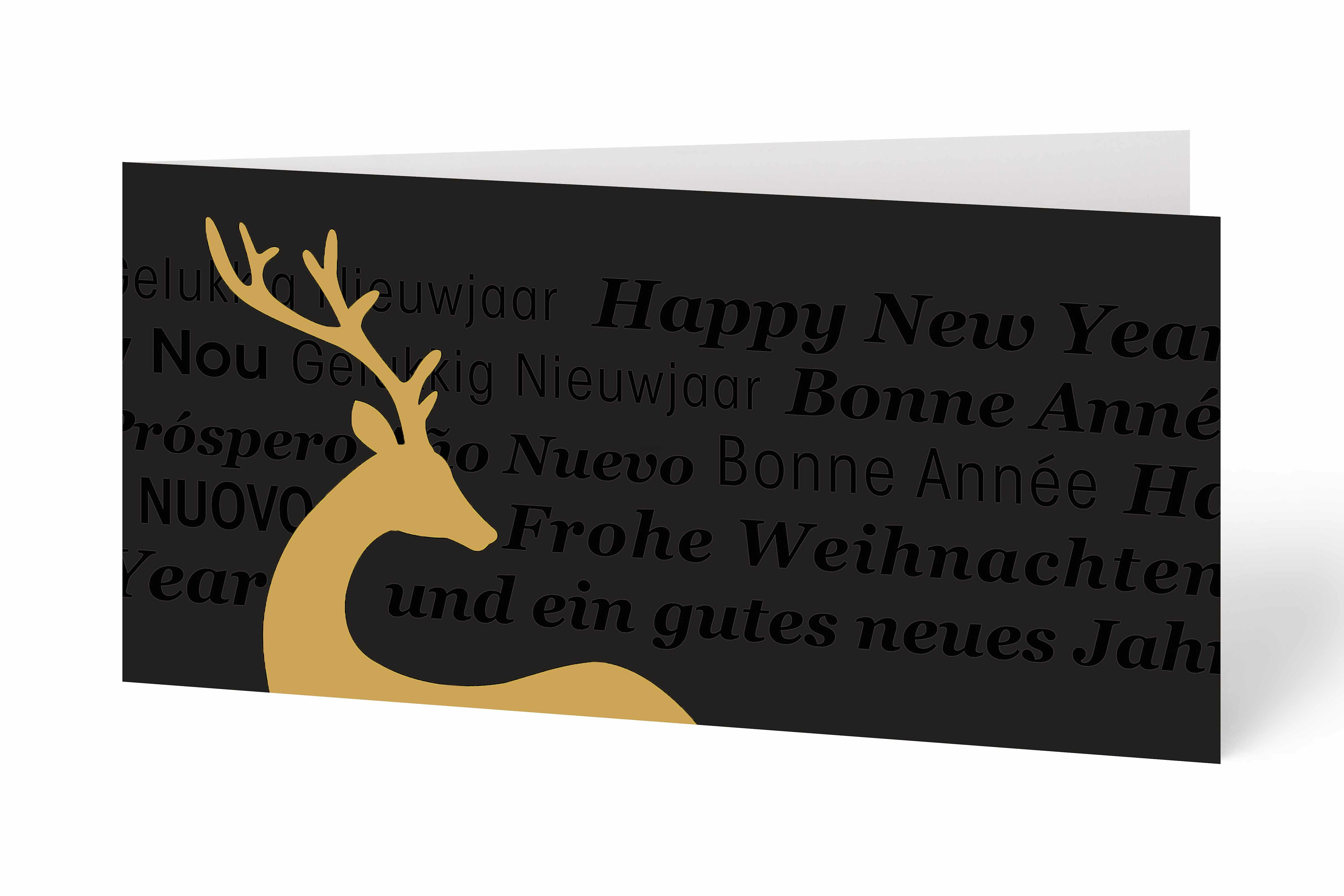 Weihnachtskarte, naturfarbener Hirsch auf schwarzem Hintergrund, Weihnachts-/Neujahrskarte