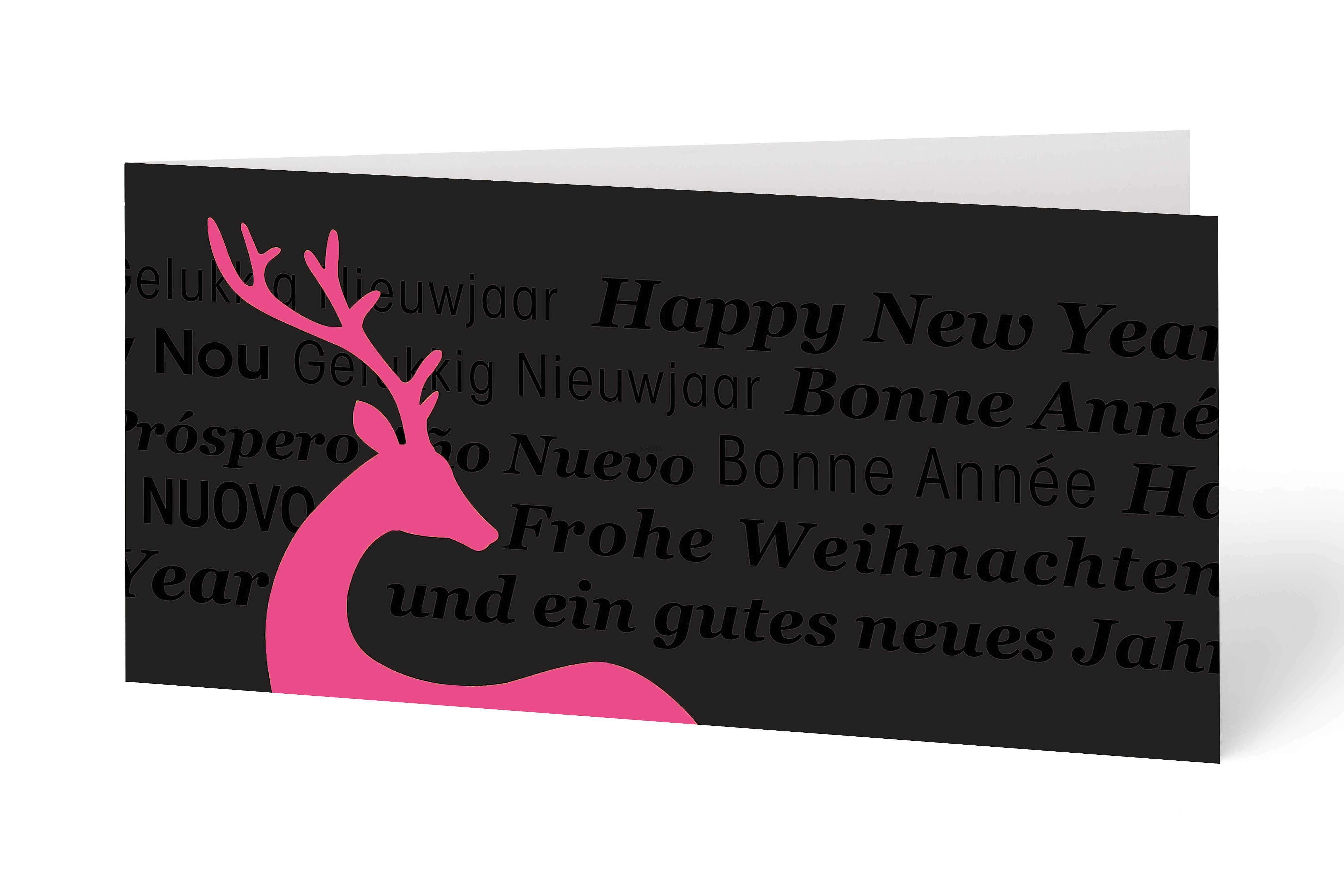 Weihnachtskarte, pinkfarbener Hirsch auf schwarzem Hintergrund, Weihnachts-/Neujahrskarte