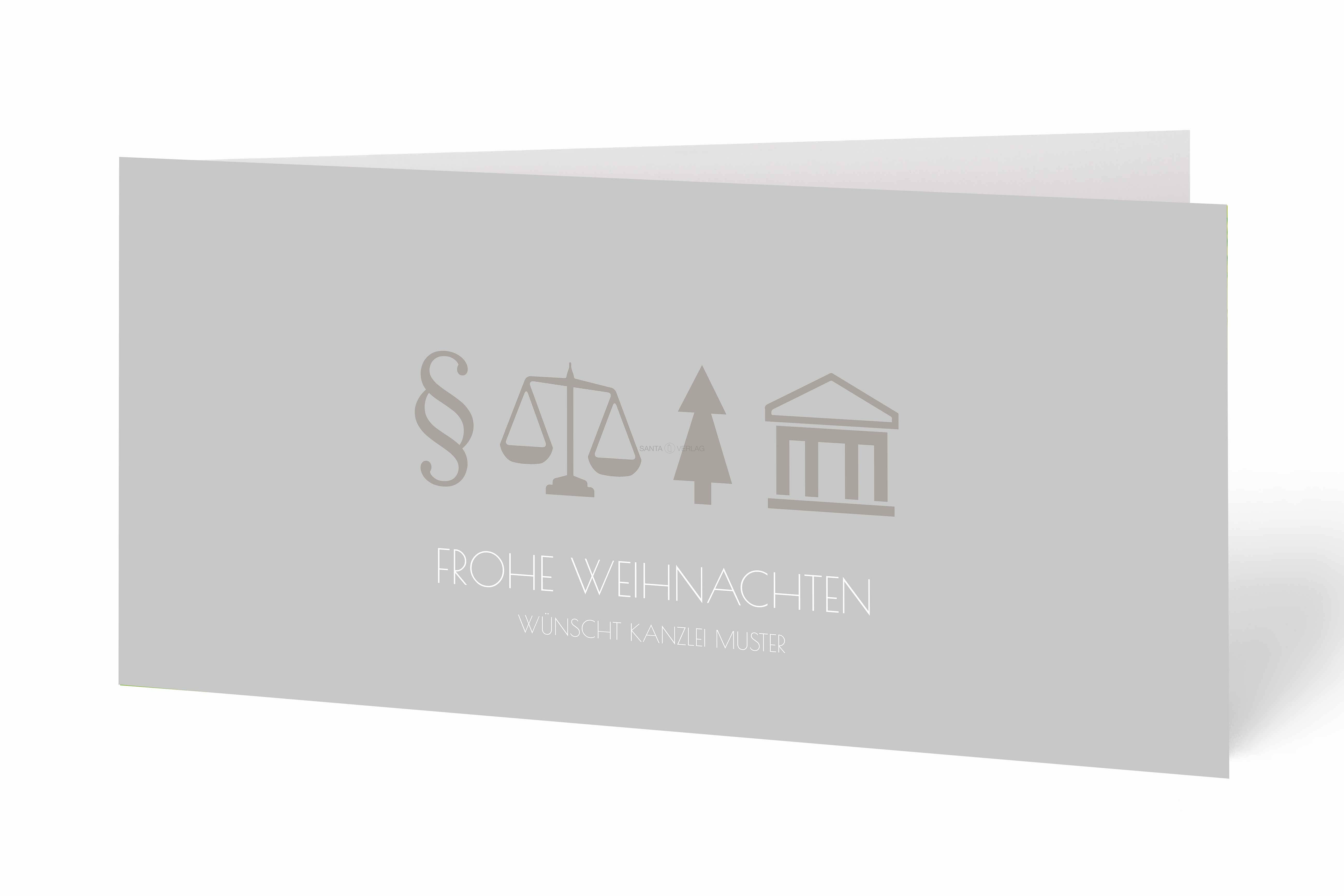 Weihnachtskarte, Justitia, frohe Weihnachten auf grauem Hintergrund