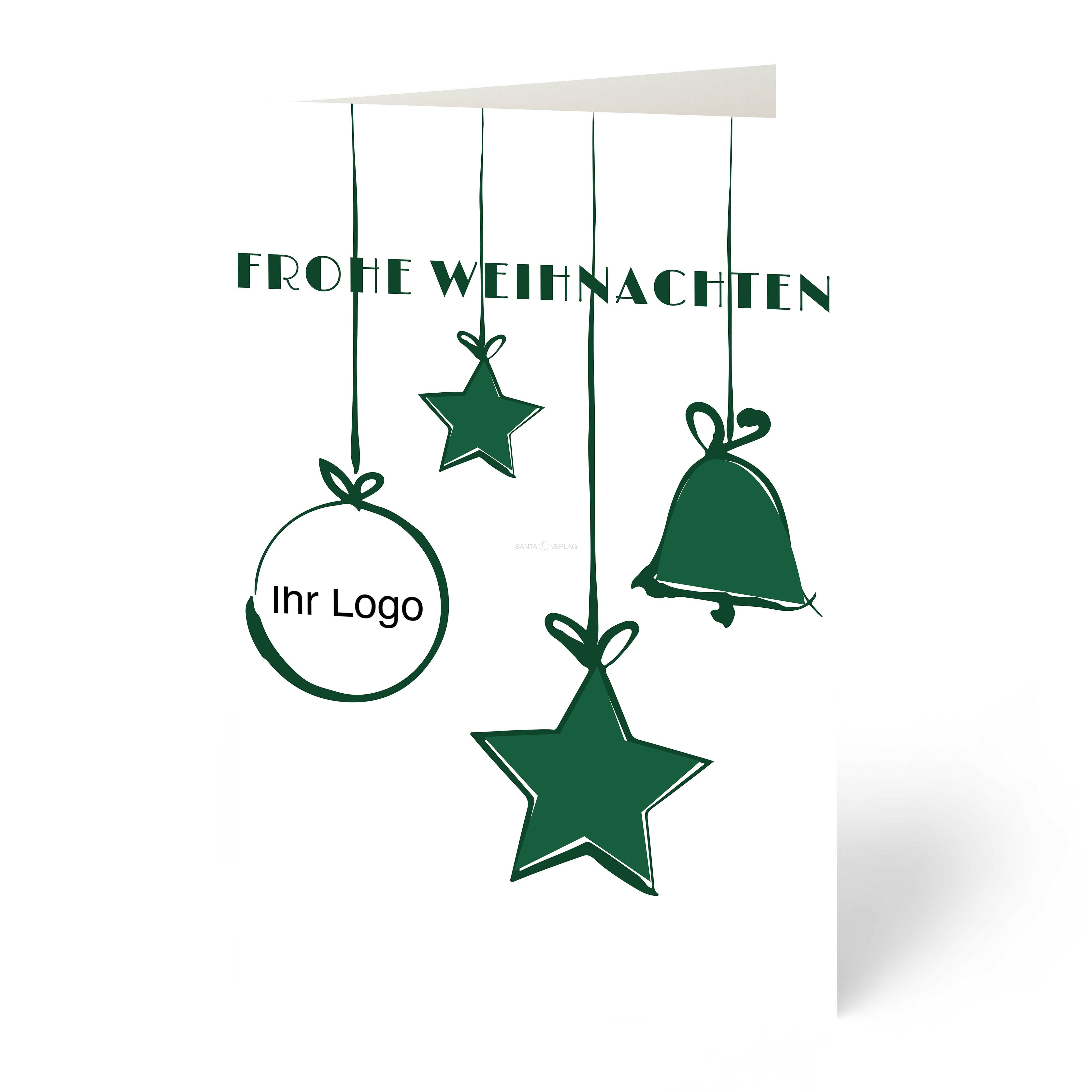Weihnachtskarte Logokarte mit grünen Weihnachtsanhängern