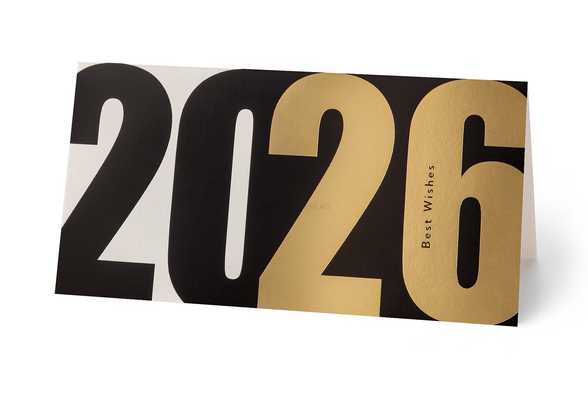 E i n e N e u j a h r s k a r t e f ü r 2 0 2 6 i n S c h w a r z u n d G o l d w i r k t e l e g a n t u n d f e s t l i c h p e r f e k t , u m d a s n e u e J a h r s t i l v o l l z u b e g r ü s s e n .