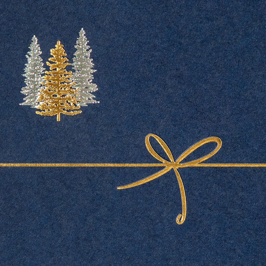 Diese Weihnachtskarte in klassischem Blau, kombiniert mit dezenter Gold- und Silberfolienprägung, strahlt eine stilvolle und festliche Atmosphäre aus.
