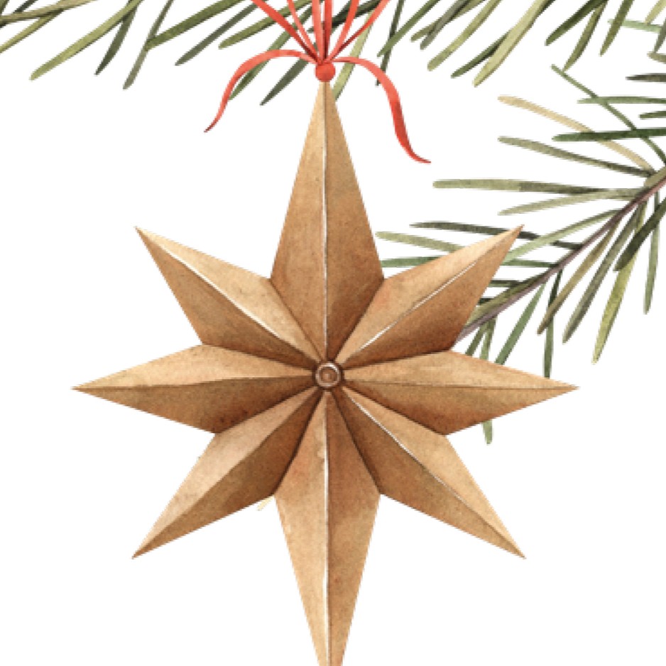 Helle, freundliche Weihnachtskarte in dezenten Farben. Warme Braun- und Grüntöne lassen dieses Motiv besonders stimmungsvoll erscheinen.